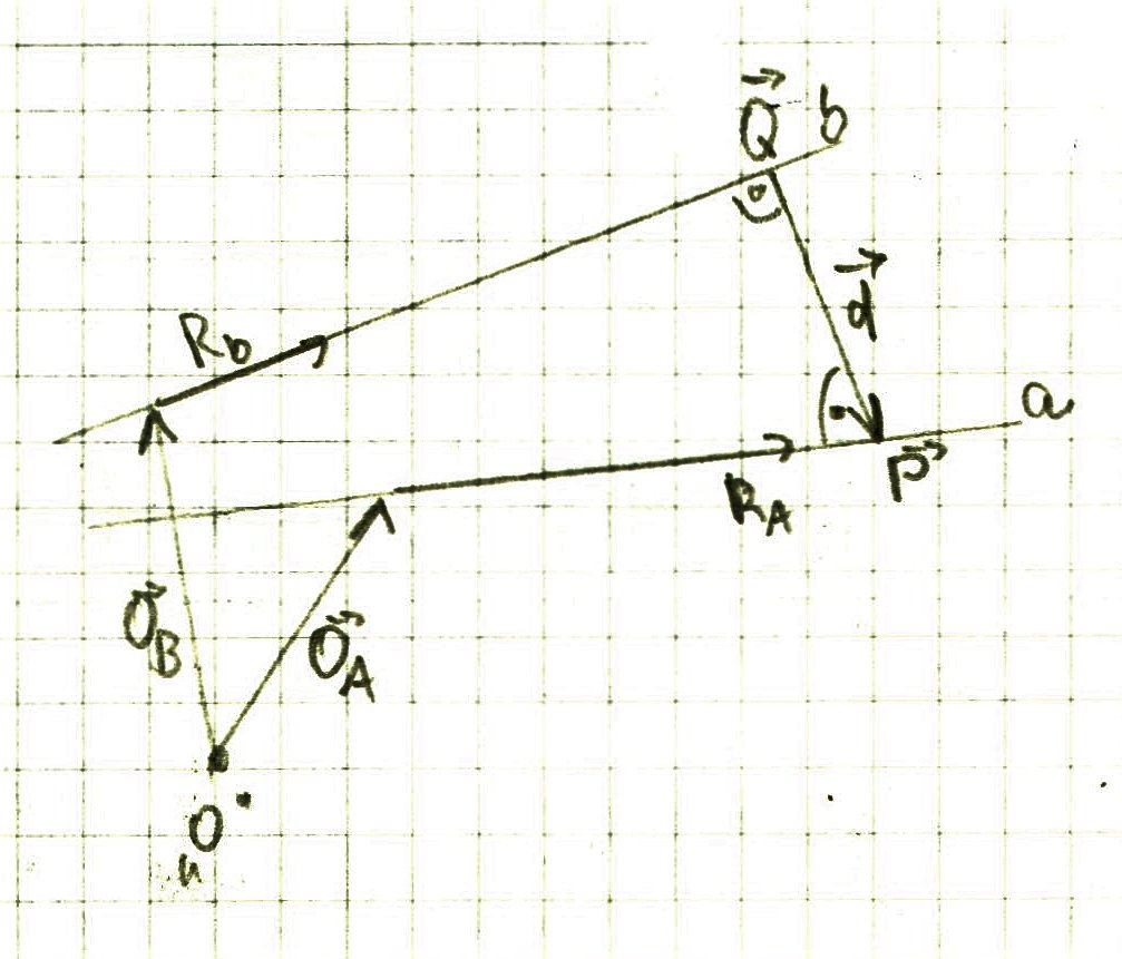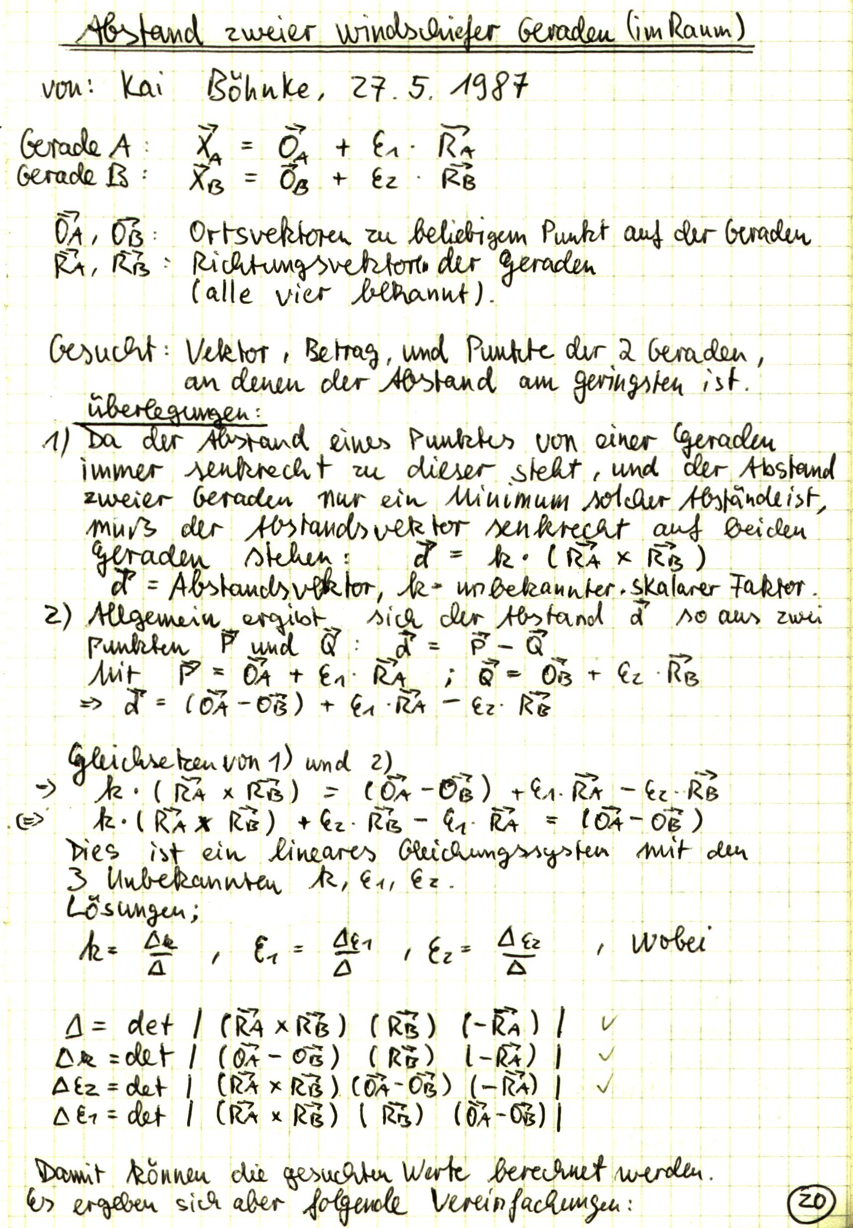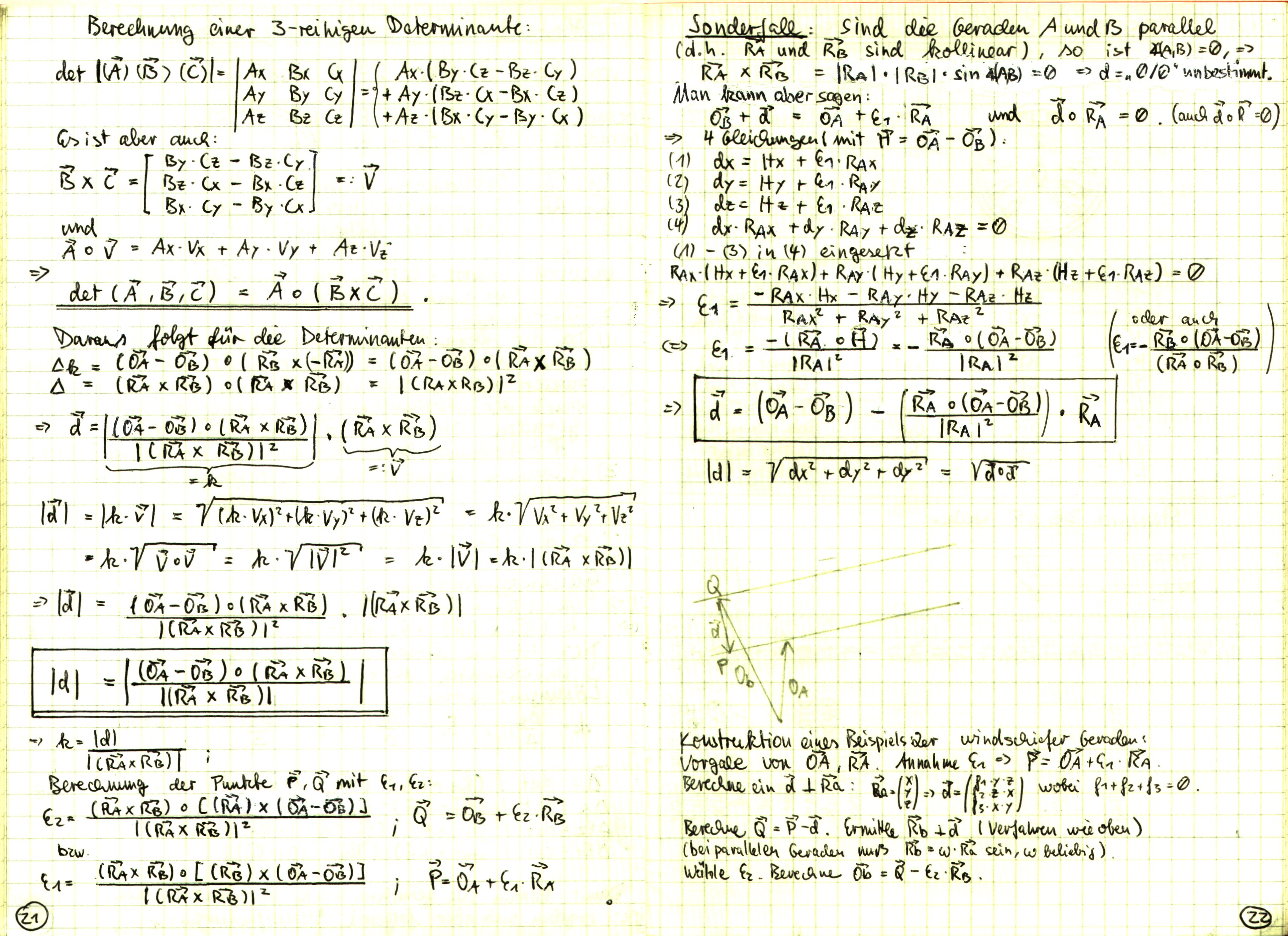 | Vektorrechnung | Abstand 2er windschiefer Geraden im Raum. |