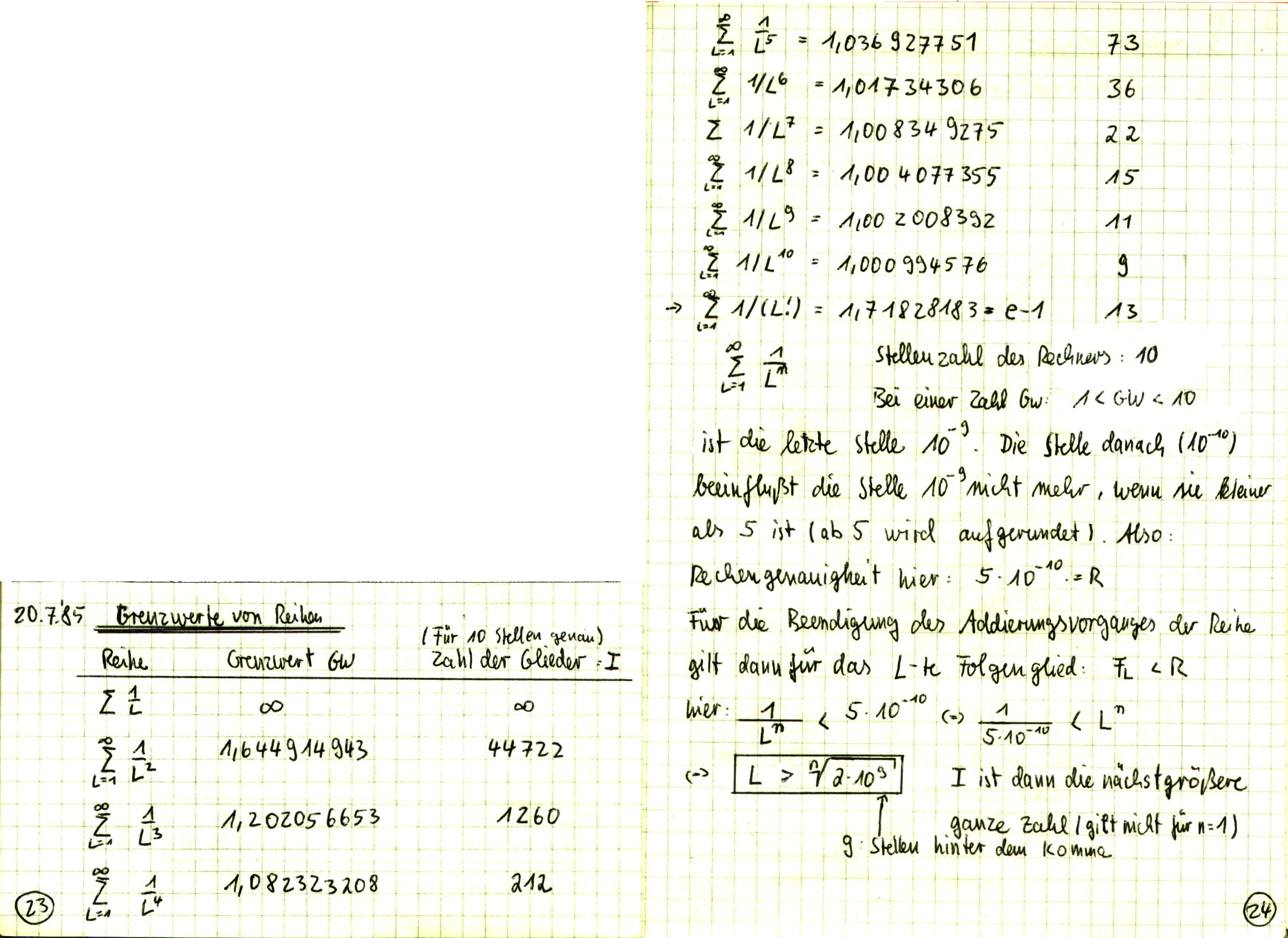 | Reihen | Grenzwerte von Reihen (darunter die Eulersche Zahl "e"=2.718281828...); Zahlensummen |