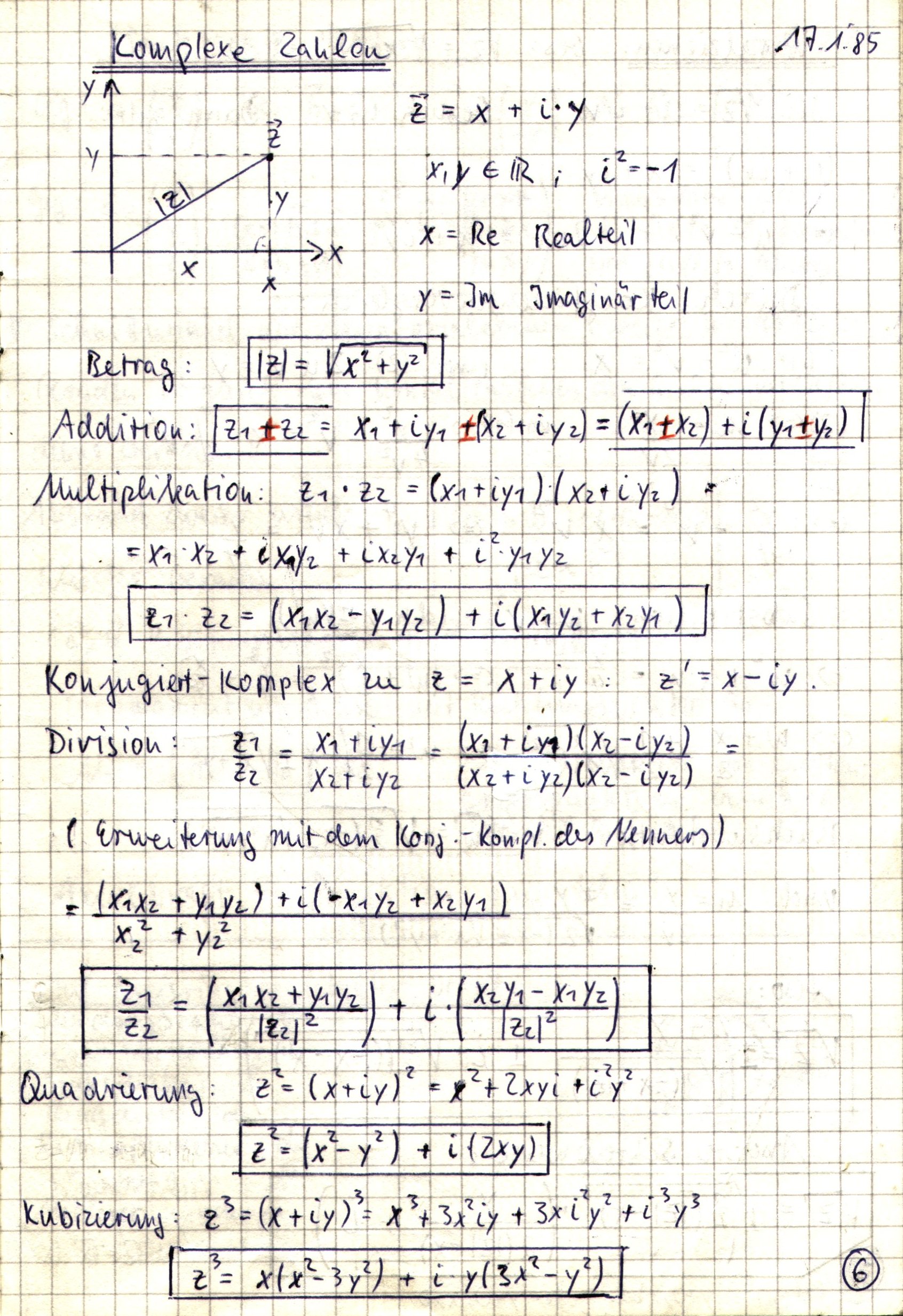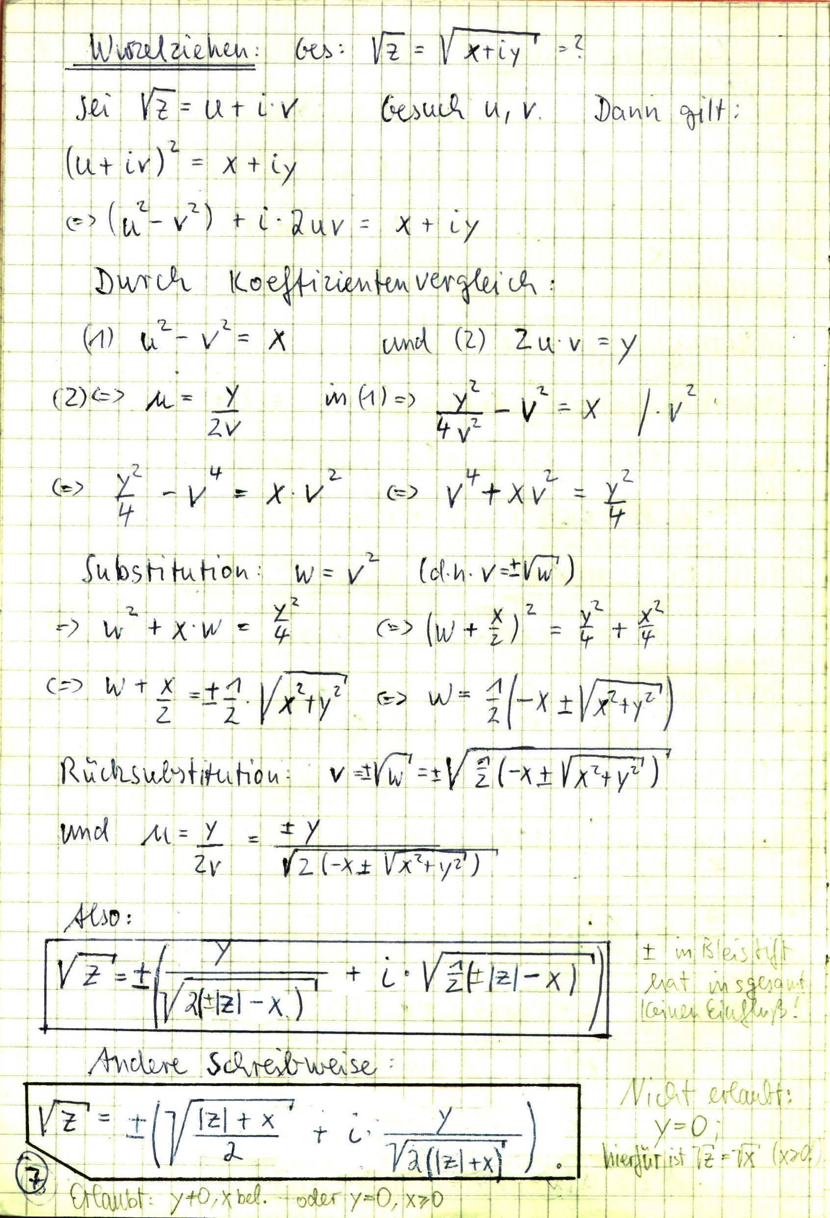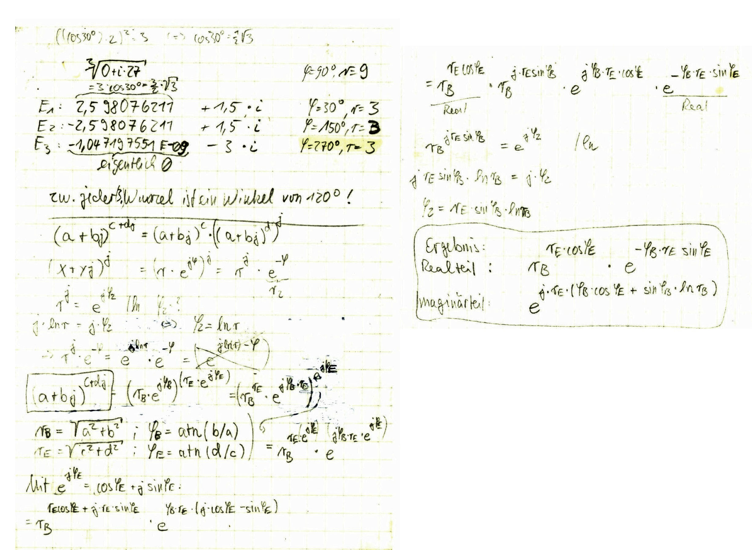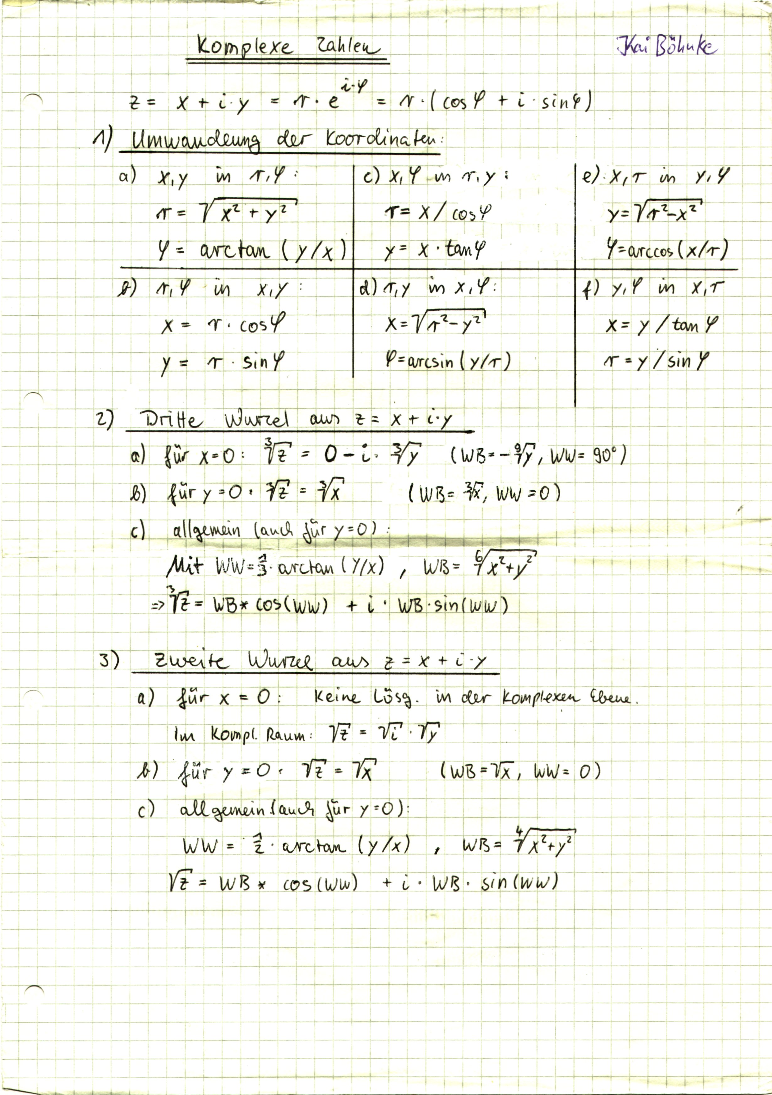 | Komplexe Zahlen | Umwandlung der Koordinaten; Zusammenhang komplexer Zahlen mit Winkelfunktionen; zweite und dritte Wurzel aus z=x+i*y |