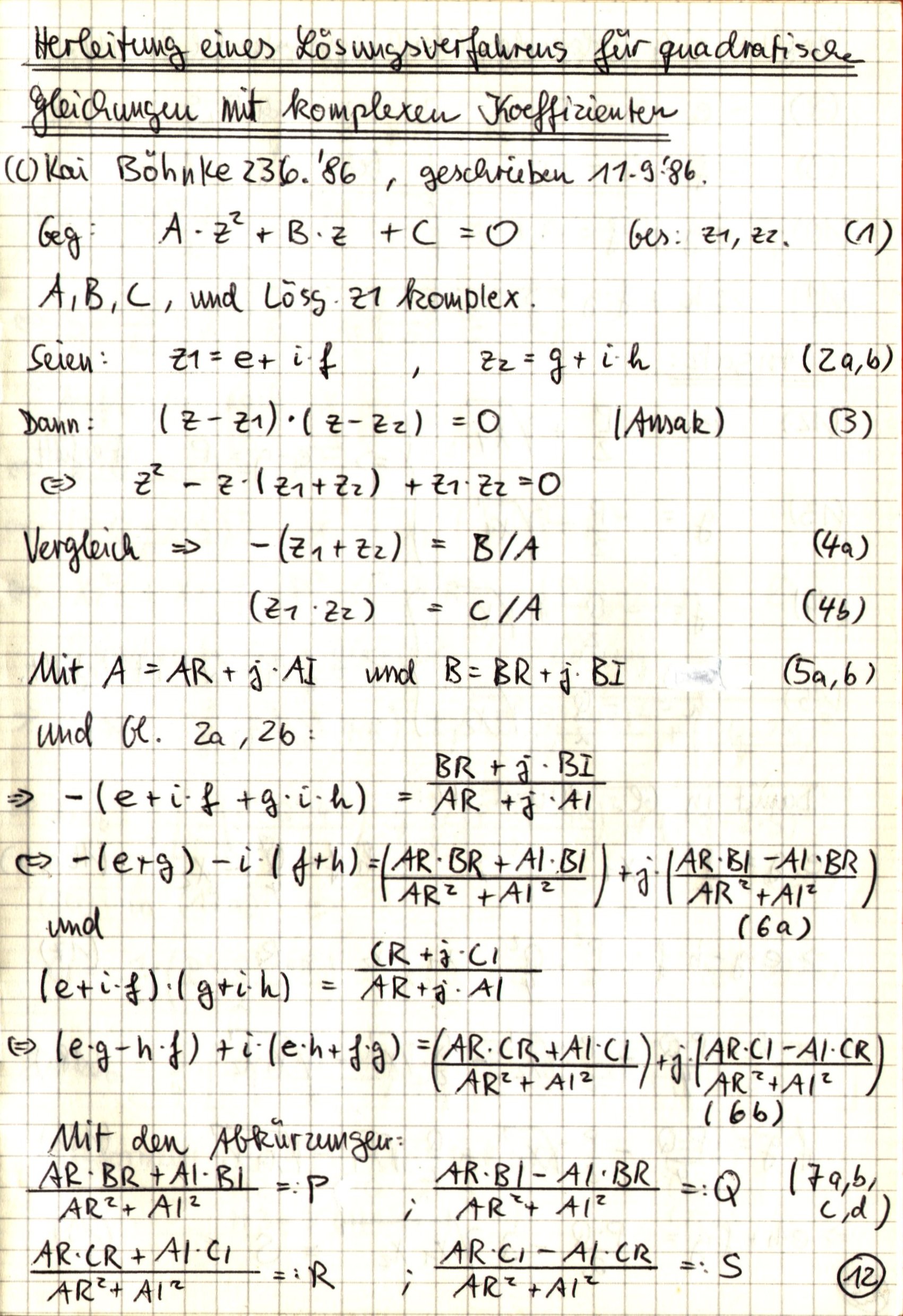 | Komplexe Zahlen | Herleitung eines Lösungsverfahrens für quadratische Gleichungen mit komplexen Koeffizienten |