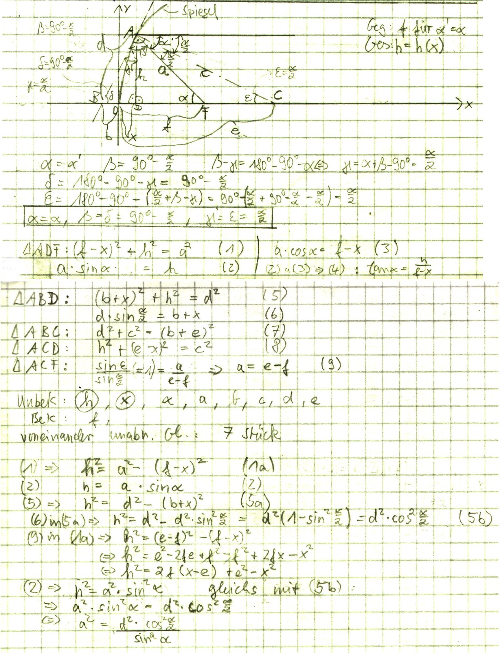 | Geometrie : Spiegel | Berechnung von Reflexionswinkeln bei einem Spiegel |