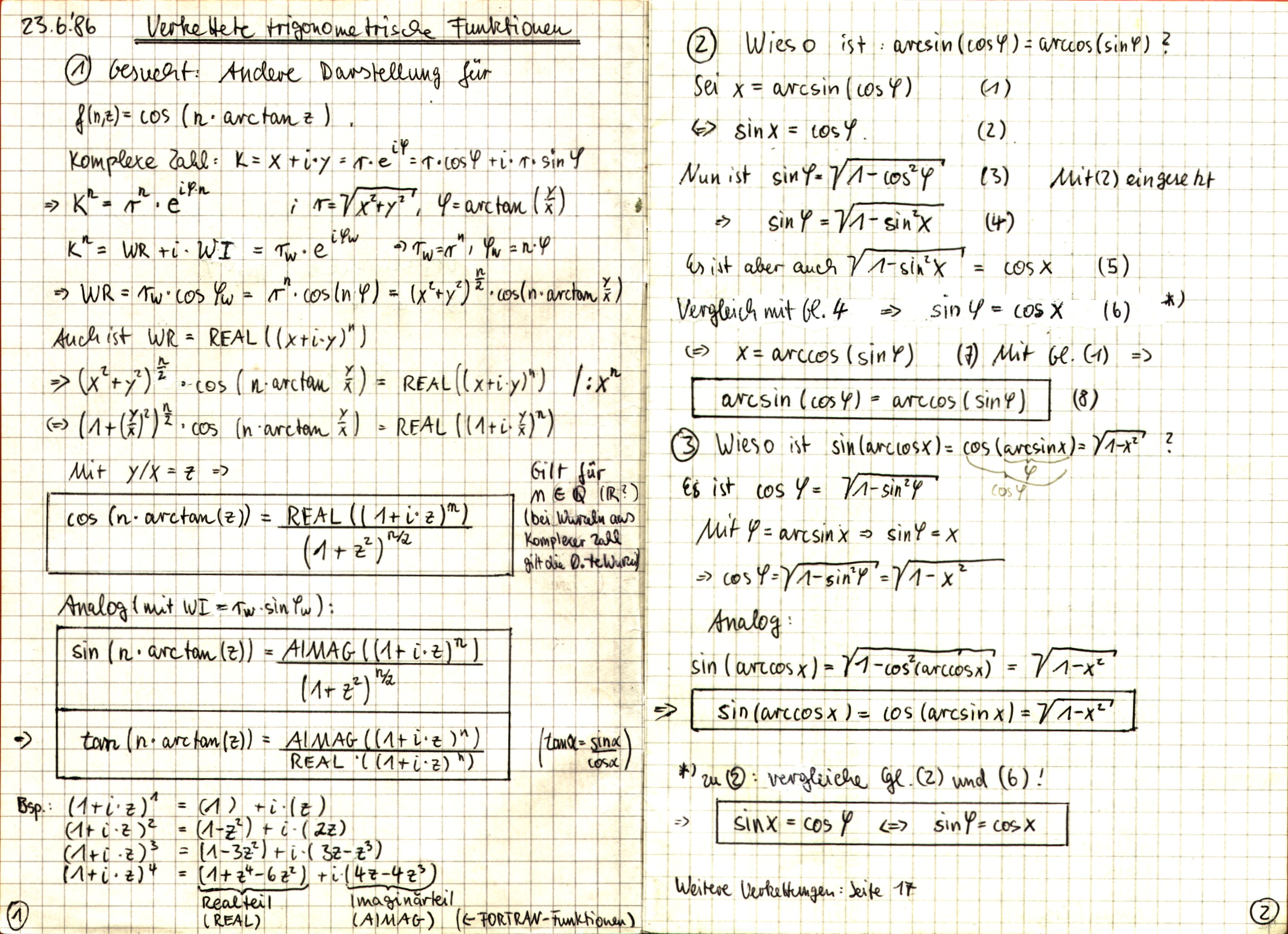| Komplexe Zahlen | Verkettete trigonomische Funktionen; Zusammenhang komplexer Zahlen mit Winkelfunktionen |